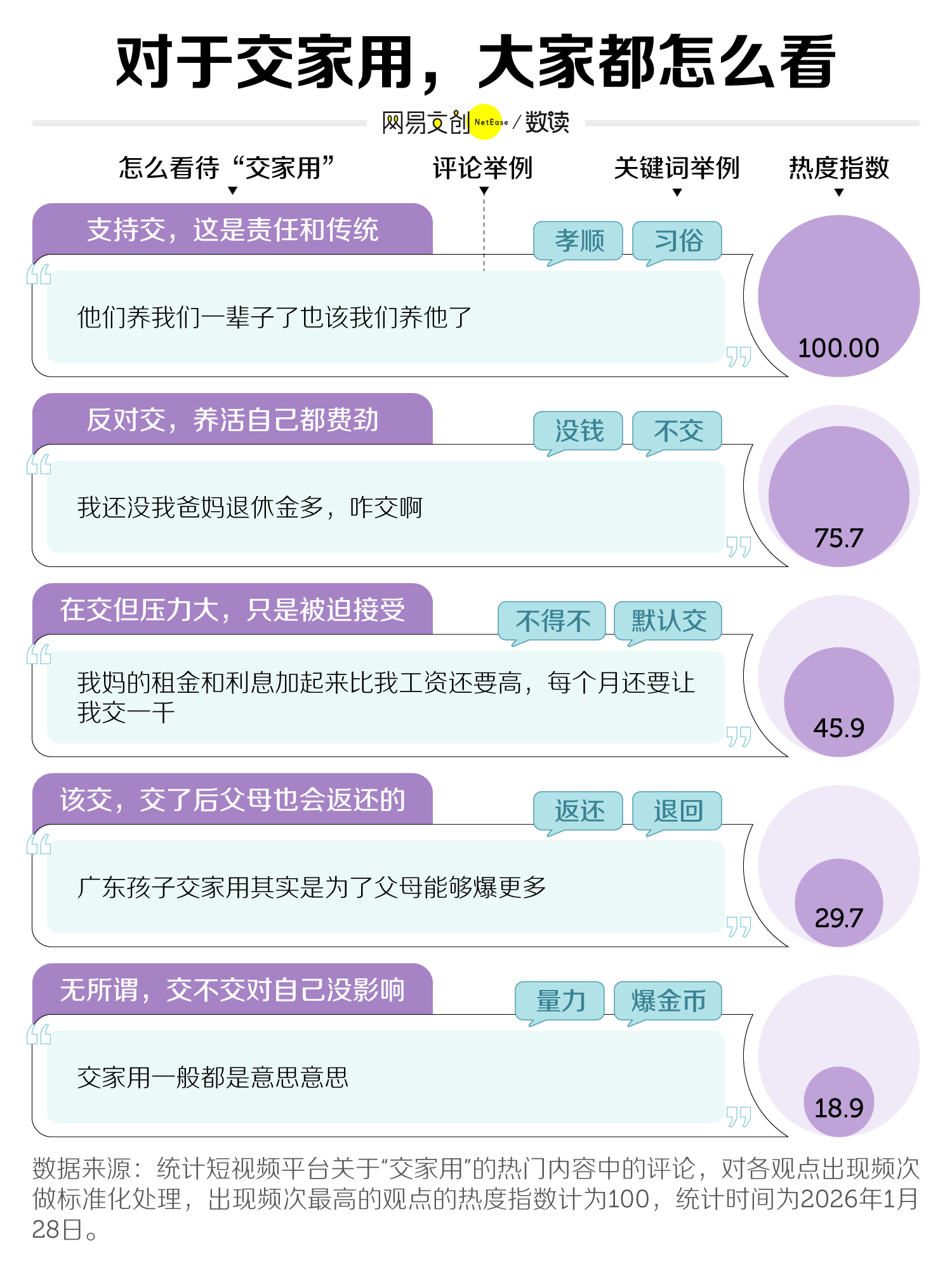 除此之外,很多网友都反复提到父母退休金问题,这也可能影响着不同人对交家用的态度。